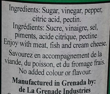 De La GrenadeThis is a tangy savory-sweet jelly made from hot & sweet Grenada peppers, in an acetic acid base. The product is delicious with cold cuts and ...