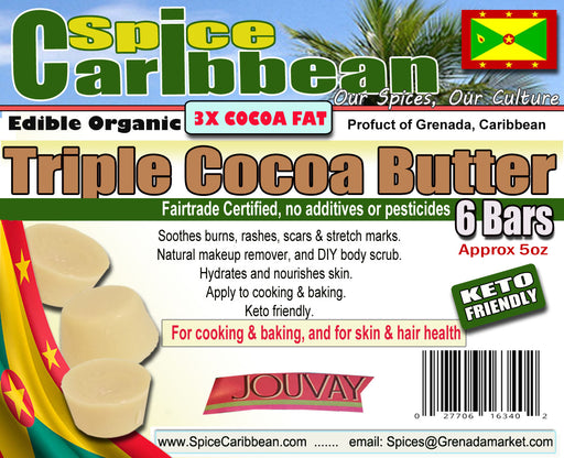 Spice CaribbeanCocoa Butter - Grenada Market "Jouvay" Cocoa butter is the naturally occurring fat in cocoa beans. It is rich in fatty acids, vitamin E and Anti...